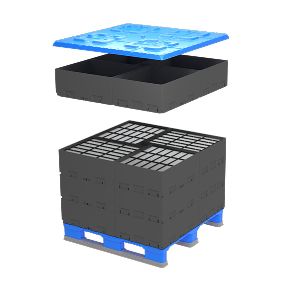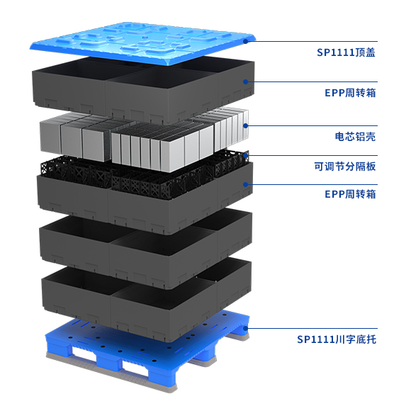 The combination of EPP crate,adjustable dividers,and silicone pads meets the requirement of the battery cell's aluminum shell not bearing weight and being universally adaptable to multiple specifications.The interior dimensions are designed to maximize capacity while providing superior protection against shock,impact,and vibration. Additionally,it considers handling and storage scenarios,reducing repackaging processes,and is compatible with various logistics automation equipment,meeting the high precision requirements for robotic arm gripping in automated production lines.Easy to operate,with a long lifespan and recyclability,it effectively reduces logistics costs.